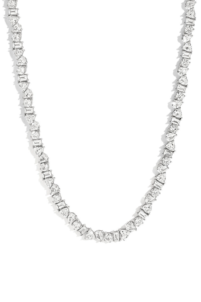 Meet Ophis, crafted in 925 sterling silver and prong-set lab grown sapphires, this updated tennis classic features alternating round, baguette, trillion, and pear cut stones that capture the light perfectly. Gorgeous enough to wear alone and interesting enough to add the perfect touch to your necklace stack. It's our take on a wardrobe staple.