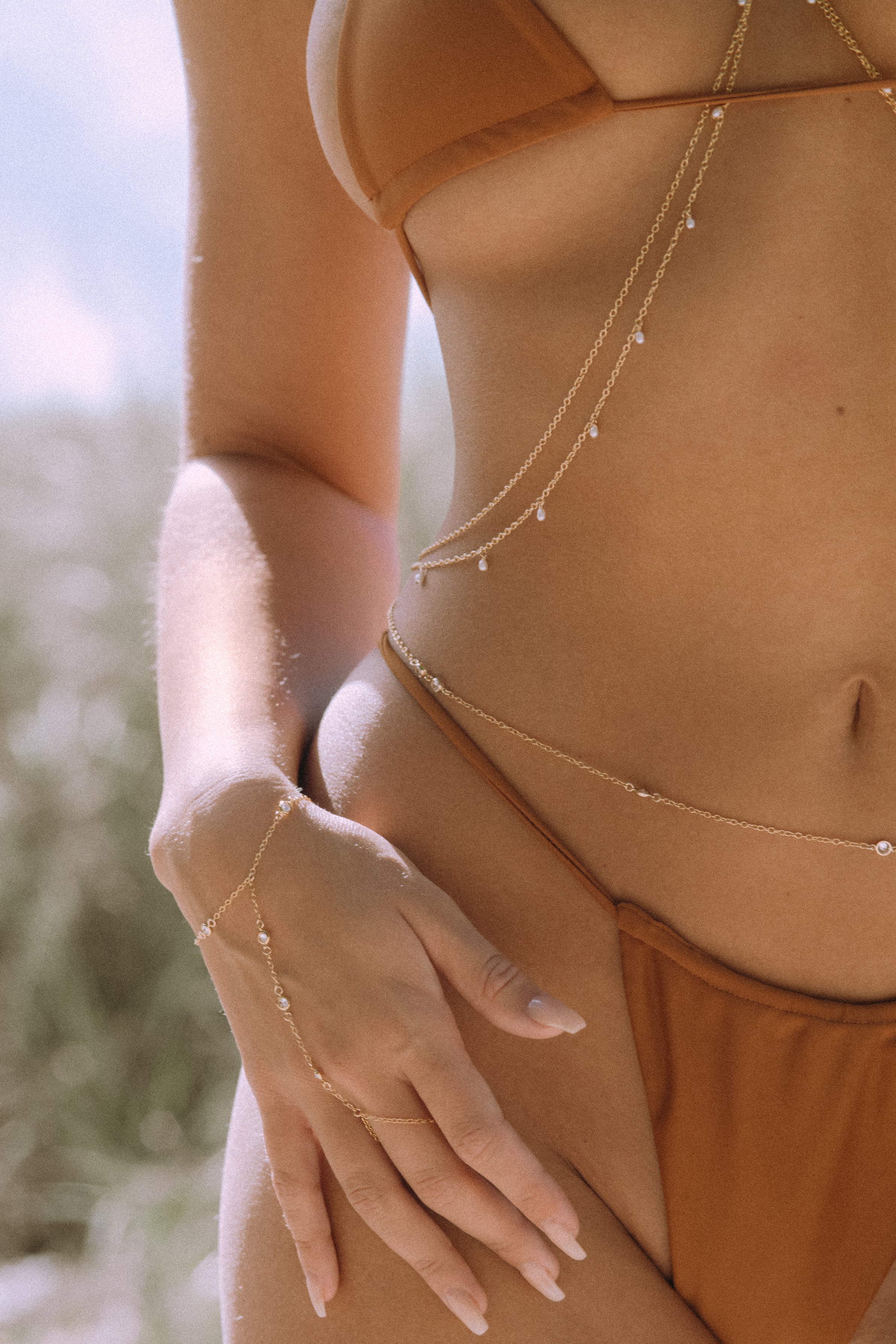 NAiiA Bayley Gold body chainNAiiA Bayley Gold gemstone body chain on model