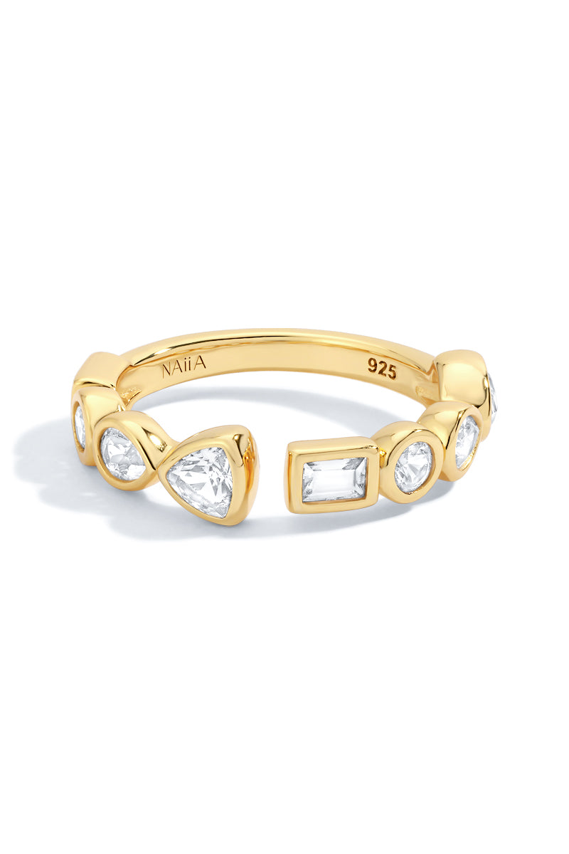 Our tennis style of alternating marquis, pear, round, and baguette white sapphires bezel-set with interest in 14k Gold Vermeil.